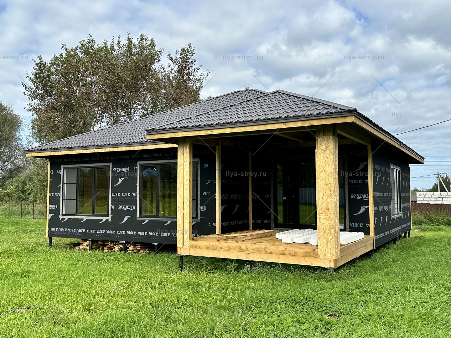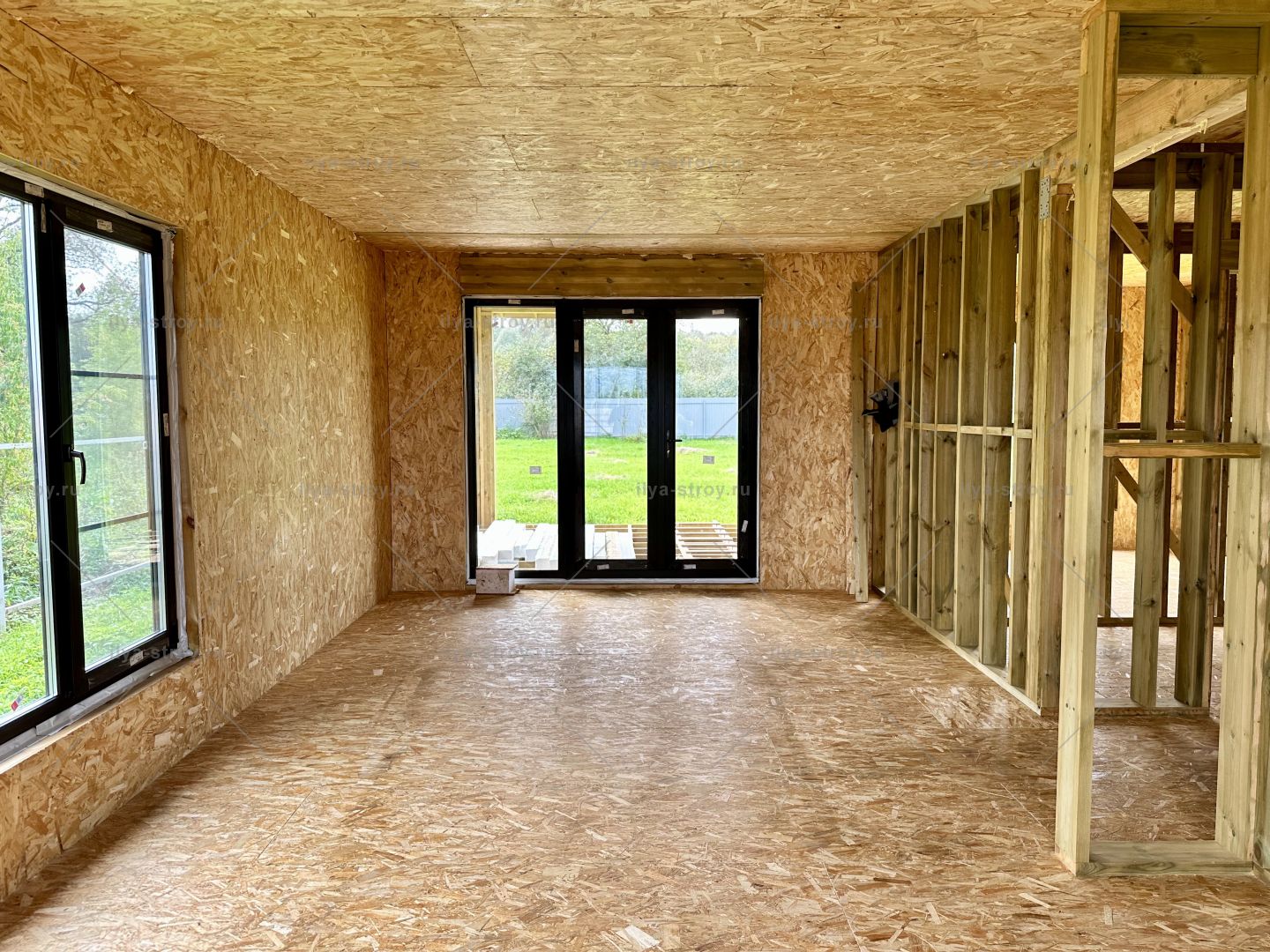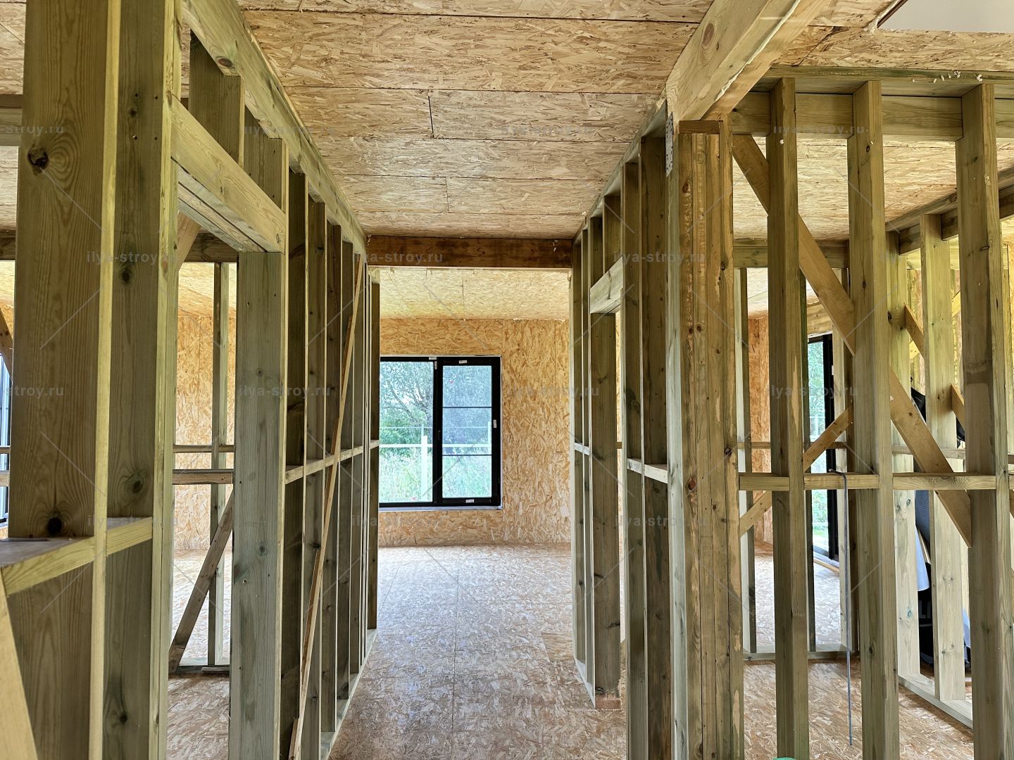 СИП панель толщиной 174 мм с несущим каркасом из антисептированного сухого бруса толщиной 150 мм.