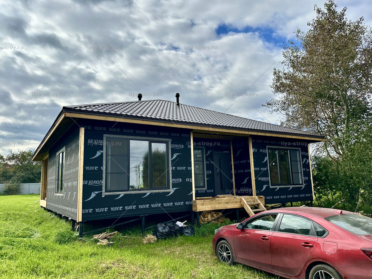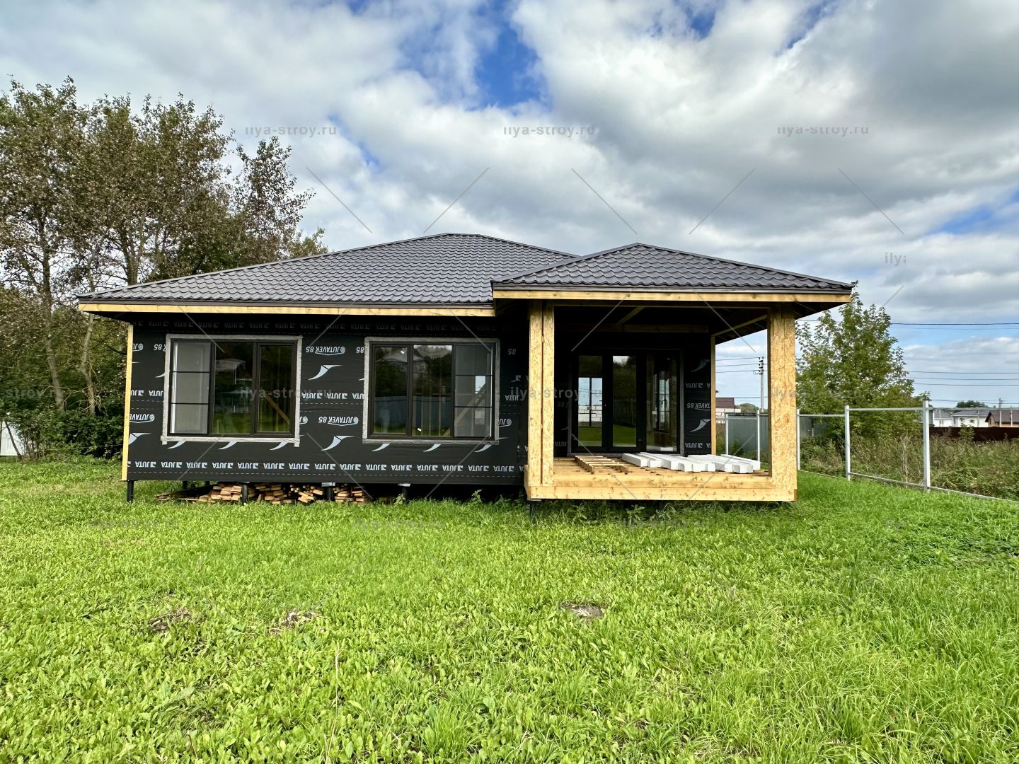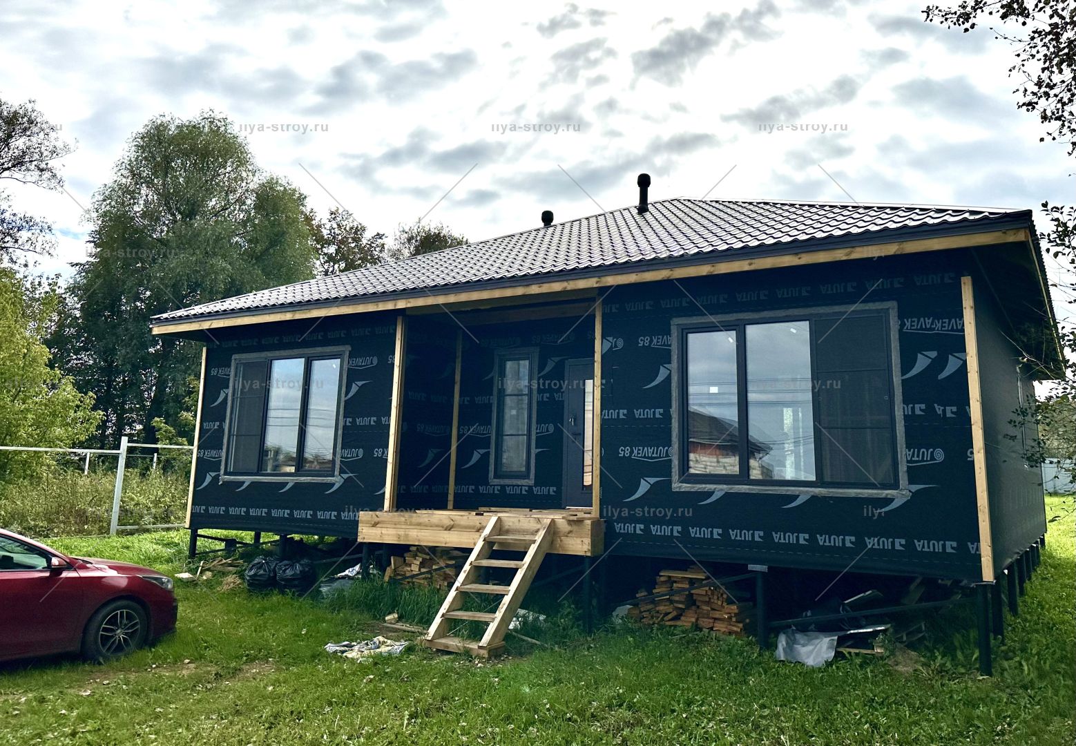 СИП панель толщиной 174 мм с несущим каркасом из антисептированного сухого бруса толщиной 150 мм.