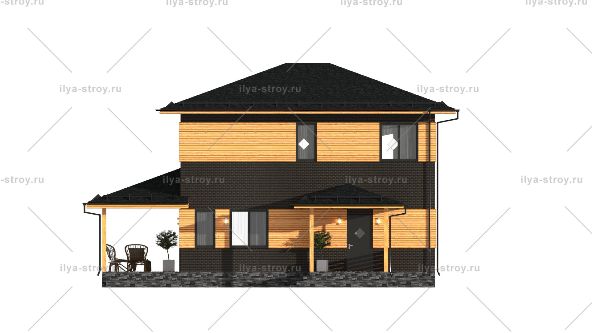 | Наружные стены | Сип-панель ОСП-3 толщиной 174 мм. Толщина утеплителя 150 мм. Усиленный несущий каркас: несущие стойки из антисептированного бруса шириной 150 мм камерной сушки влажностью до 14%. | Сип-панель ЦСП или Гринборд толщиной 174 мм. Толщина утеплителя 150 мм. Усиленный несущий каркас: несущие толщиной стойки из антисептированного бруса шириной 150 мм камерной сушки влажностью до 14%. |