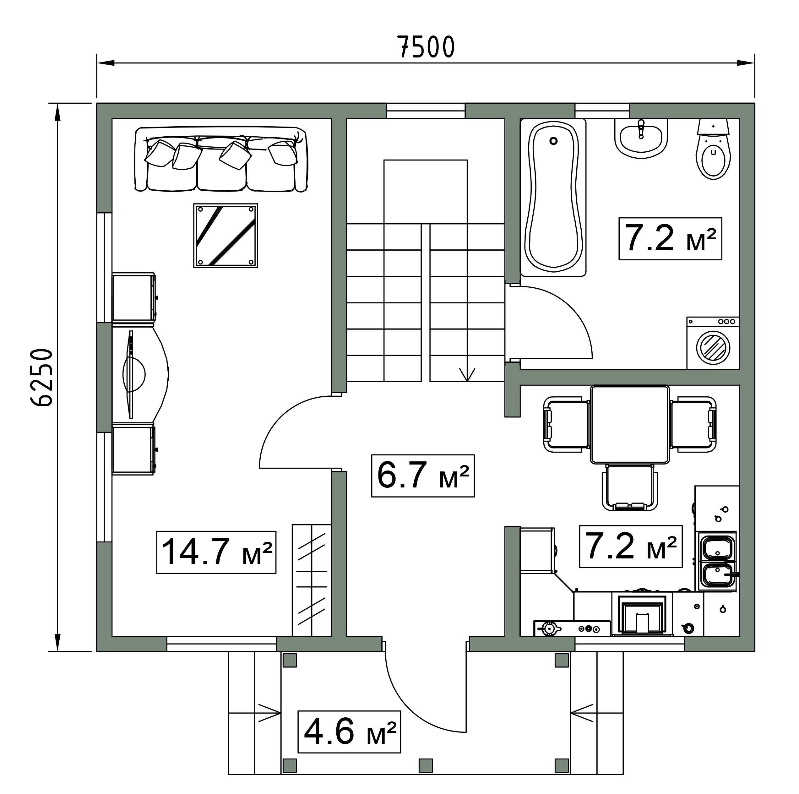 | Внутренние перегородки | Каркас из антисептированной доски 50х150 мм строганной камерной сушки влажностью до 14%. (Возможна замена на СИП-панели). | Каркас из антисептированной доски 50х150 мм строганной камерной сушки влажностью до 14%. (Возможна замена на СИП-панели). |